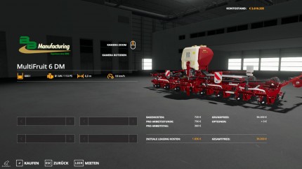 Mit der MultiFruit 6 bietet die Firma BB Manufacturing in Lizenz der Fa. Lemken eine Multifrucht-Sämaschine für kleinere Feldgrößen an. Die MF 6 DM verfügt über eine Arbeitsbreite von 6 m und kann sämtliche Standardfrüchte mit Ausnahme von Pappeln säen resp. pflanzen. Mit dem optional erhältlichen Zusatztank MF 6 T kann die Maschine zusätzlich um eine Düngefunktion bereits während der Aussaat erweitert werden. Gegenüber dem Original verfügt die MF 6 über eine verbesserte Standfestigkeit und ein leicht vergrößertes Tankvolumen für Saatgut und Dünger. Geliefert wird die Maschine in den Farben Crimson und Beige.